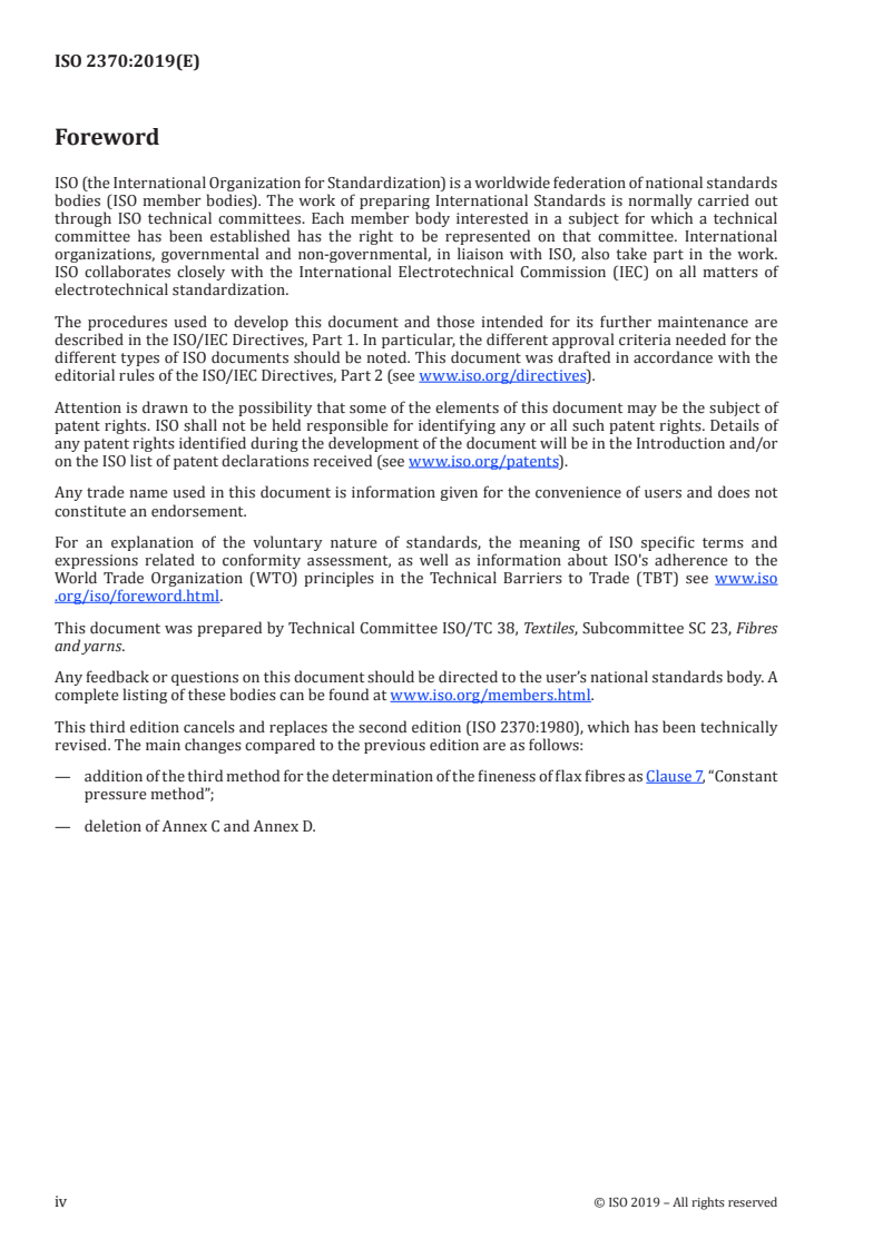 ISO 2370:2019 - Textiles — Determination of fineness of flax fibres — Permeametric methods Released:1/10/2019