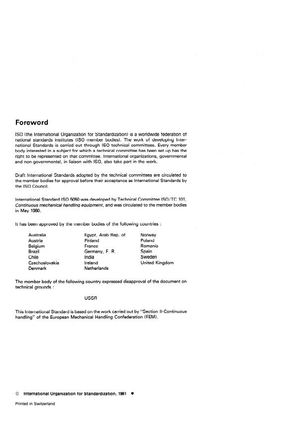 ISO 5050:1981 is classified under the following ICS (International Classification for Standards) categories: 53.040.99 - Other continuous handling equipment. The ICS classification helps identify the subject area and facilitates finding related standards.