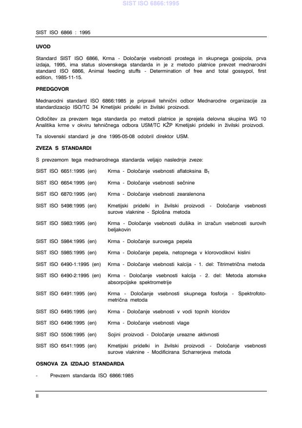 Standard SIST ISO 6866, Krma - Dolo~anje vsebnosti prostega in skupnega gosipola, prva
