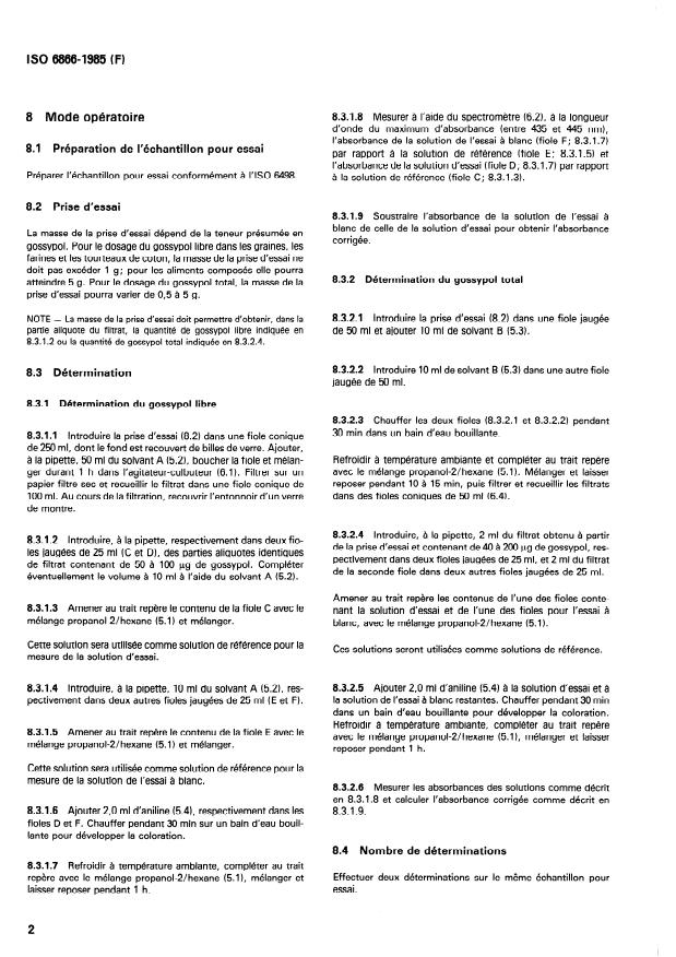 standard ISO 6866, Animal feeding stuffs - Determination of free and total gossypol, first