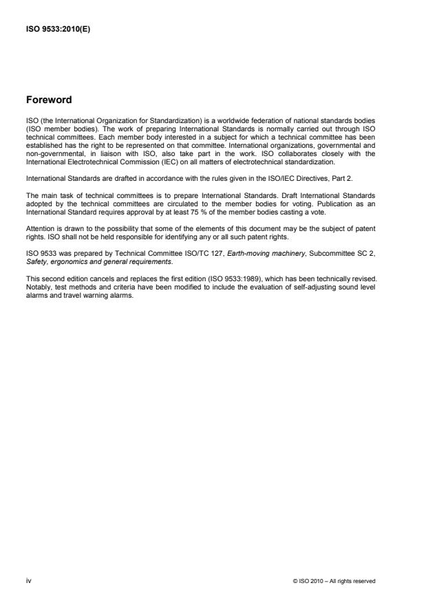 ISO 9533:2010 - Earth-moving machinery -- Machine-mounted audible travel alarms and forward horns -- Test methods and performance criteria