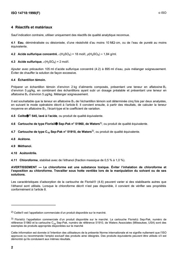 10 μg/kg, et un matériau de référence certifié ou un échantillon témoin (4.4). L’ajout d’un échantillon d’essai à blanc