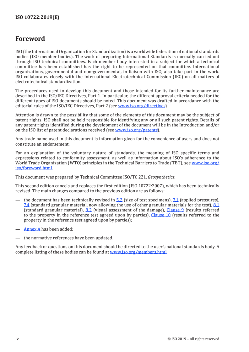 Keywords: ISO 10722:2019, geosynthetics, mechanical damage, index test procedure, repeated loading, granular material, tensile strength, laboratory test method.