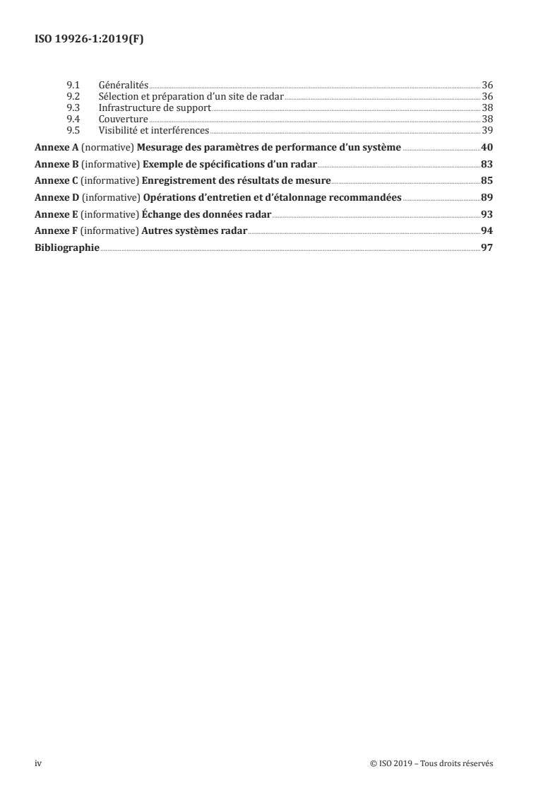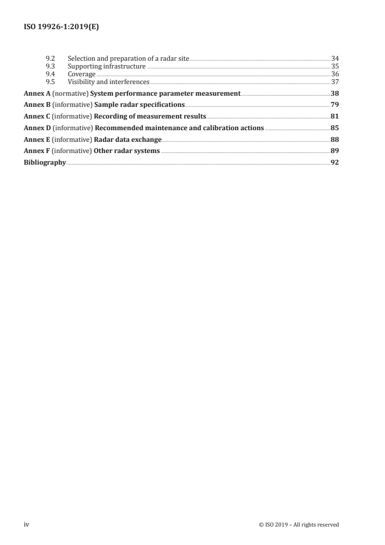 - Supporting annexes provide measurement methods, sample radar specifications, recording templates, maintenance recommendations and radar data‑exchange considerations.