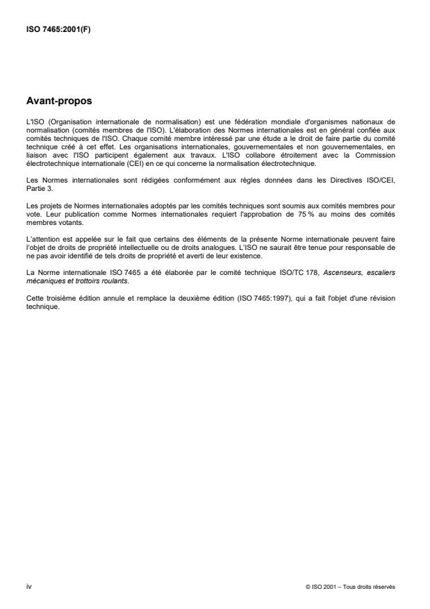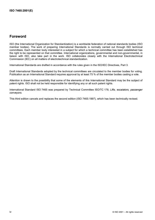 International Standard ISO 7465 was prepared by Technical Committee ISO/TC 178, Lifts, escalators, passenger