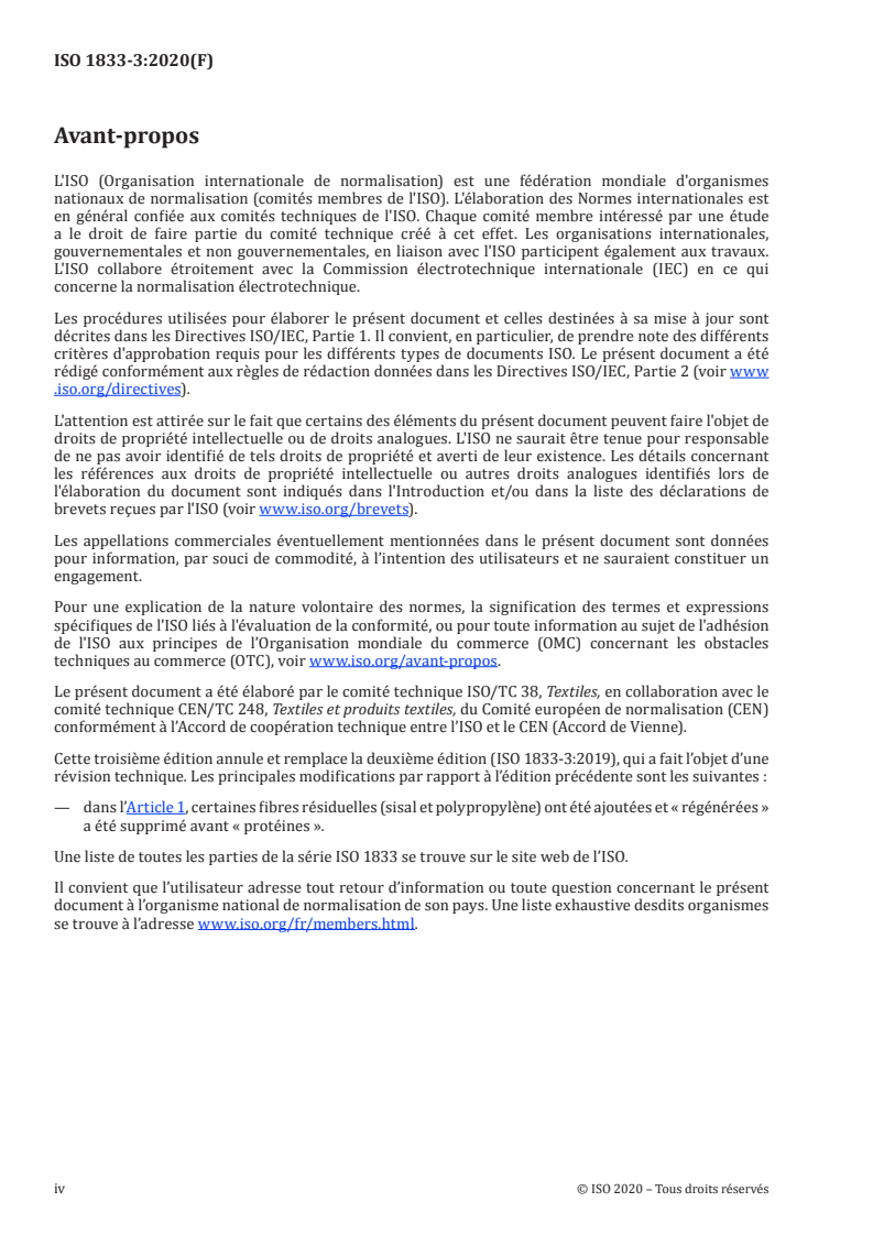 ISO 1833-3:2020 - Textiles — Analyse chimique quantitative — Partie 3: Mélanges d'acétate avec certaines autres fibres (méthode à l'acétone) Released:11/27/2020