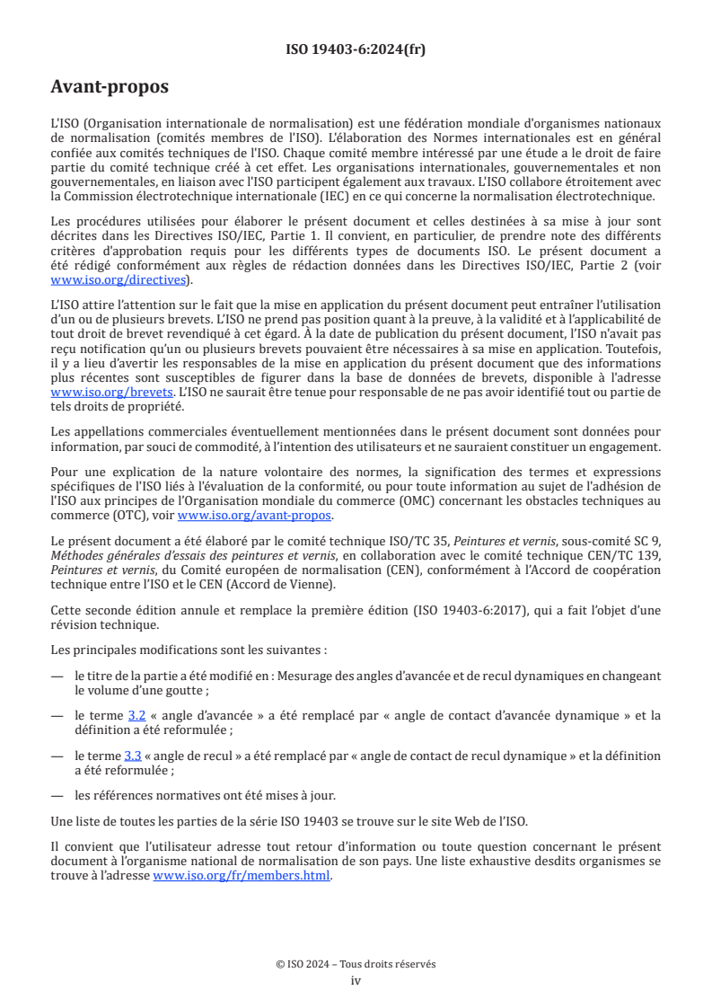 Cette seconde édition annule et remplace la première édition (ISO 19403-6:2017), qui a fait l’objet d’une