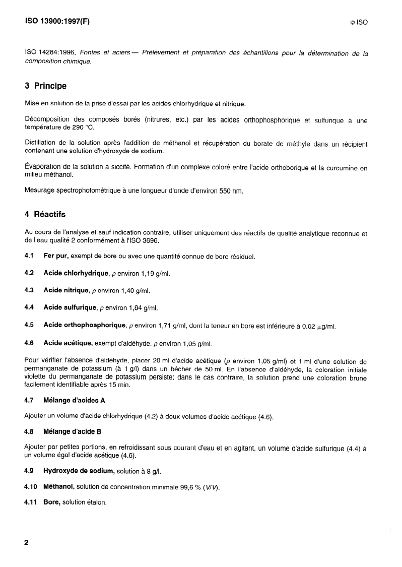 Keywords: ISO 13900:1997, boron determination, curcumin spectrophotometric method, steel analysis, distillation, trace boron, spectrophotometry, calibration, precision.