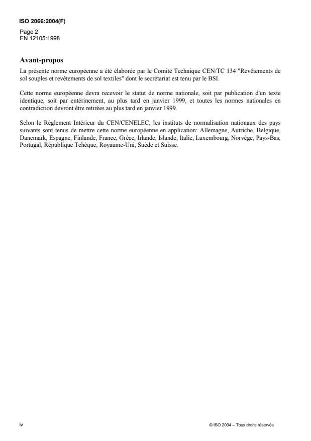 L'ISO 2066 a été élaborée par le Comité Européen de Normalisation (en tant que EN 12105) et a été adoptée,