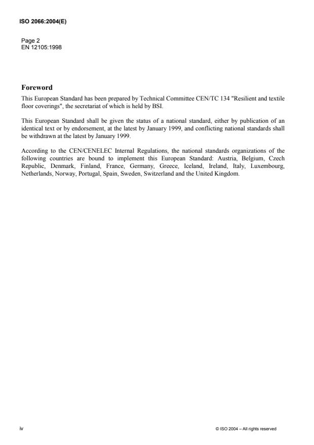 ISO 2066 was prepared by the European Committee for Standardization as EN 12105 and was adopted,