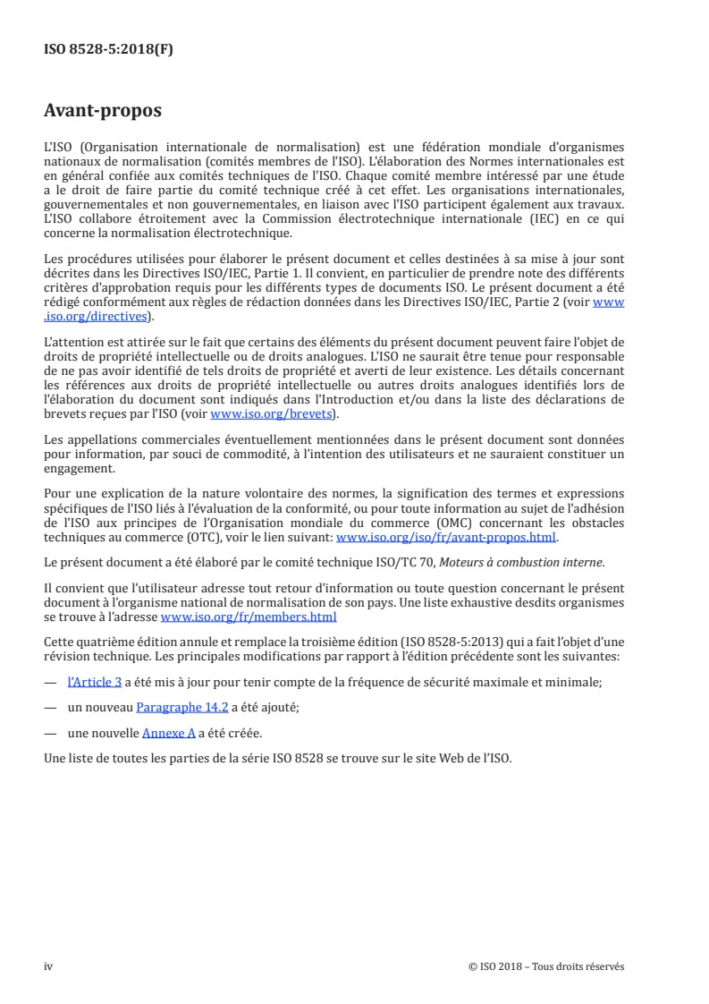ISO 8528-5:2018 - Reciprocating internal combustion engine driven alternating current generating sets — Part 5: Generating sets Released:10/19/2018