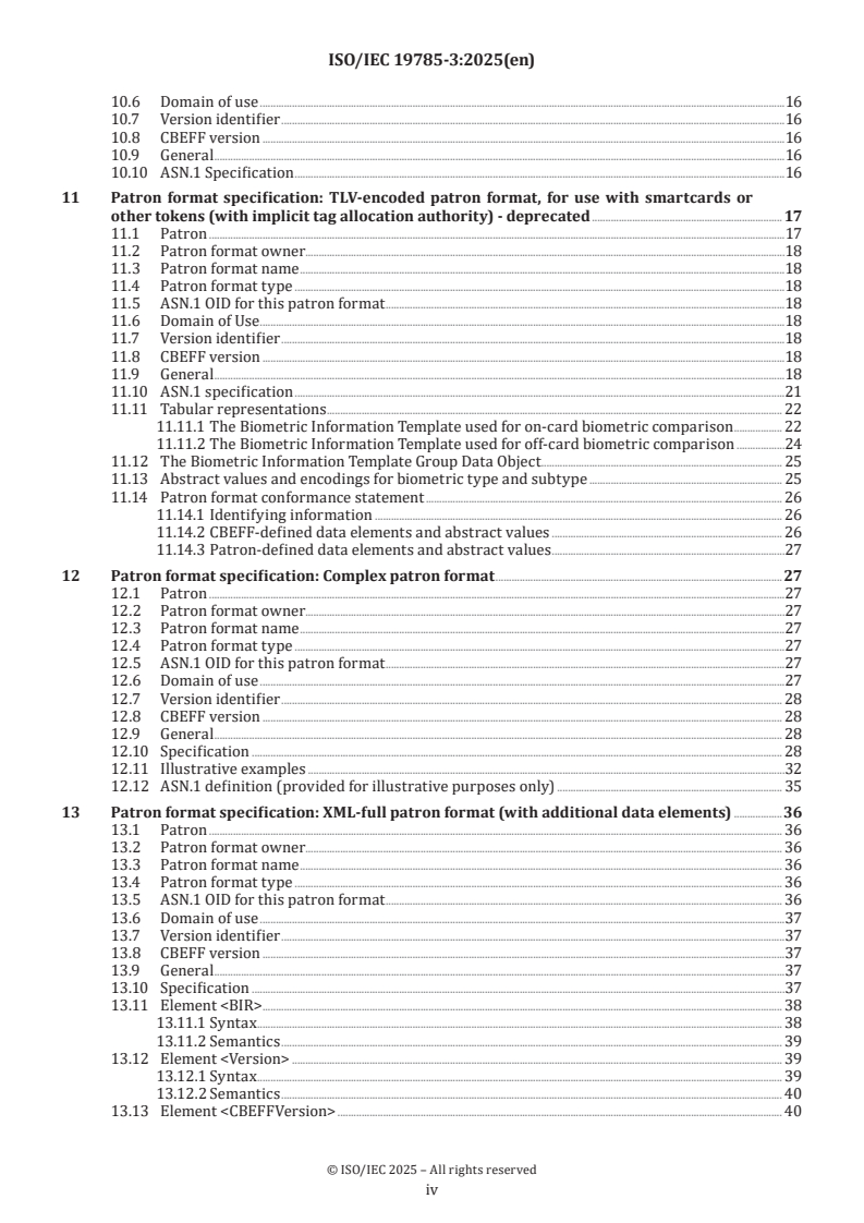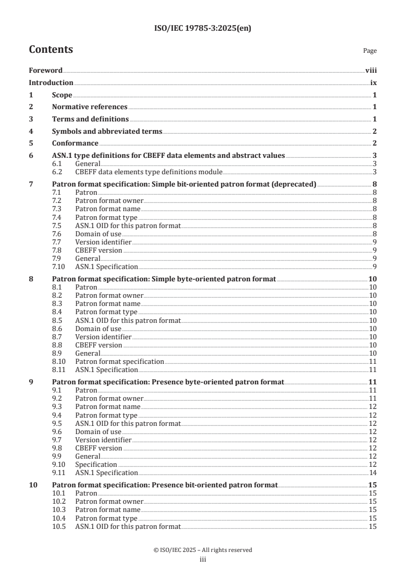 Keywords: ISO/IEC 19785-3:2025, CBEFF, patron format, biometric exchange formats, ASN.1 OID, patron format types, biometric interoperability, TLV smartcard format.