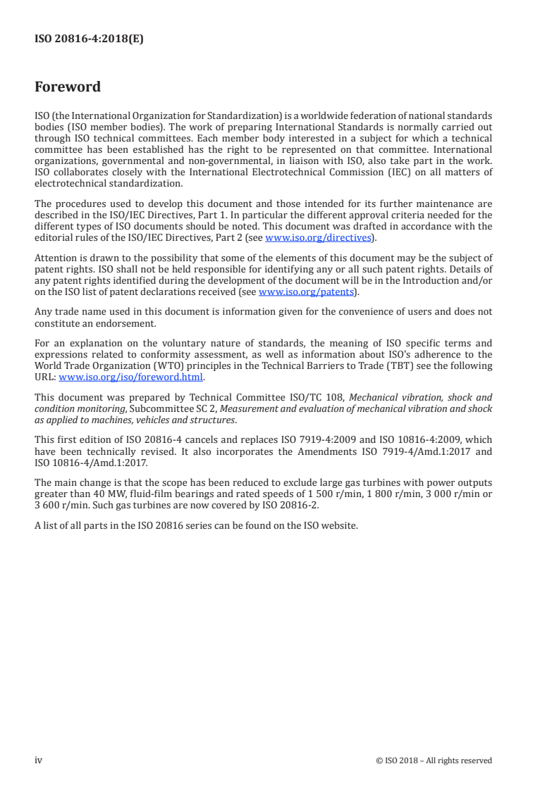 ISO 20816-4:2018 - Mechanical vibration — Measurement and evaluation of machine vibration — Part 4: Gas turbines in excess of 3 MW, with fluid-film bearings Released:6/18/2018