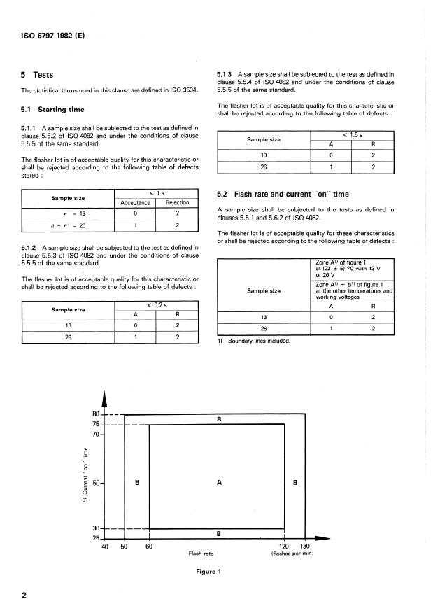ISO 6797:1982 is an international standard that establishes production conformity requirements for flasher units used in road motor vehicles, excluding motorcycles. Developed by ISO Technical Committee ISO/TC 22, this standard defines acceptable quality levels for various characteristics of flasher units tested via random sampling. While ISO 6797 does not specify sampling frequency or batch sizes, it applies exclusively to flasher types that comply with ISO 4082, ensuring consistency and safety in automotive signaling devices.