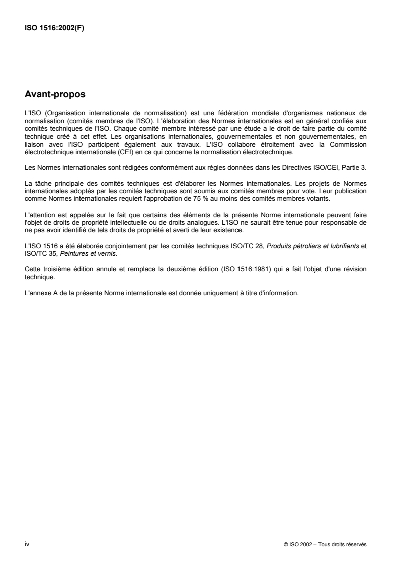 Cette troisième édition annule et remplace la deuxième édition (ISO 1516:1981) qui a fait l'objet d'une révision