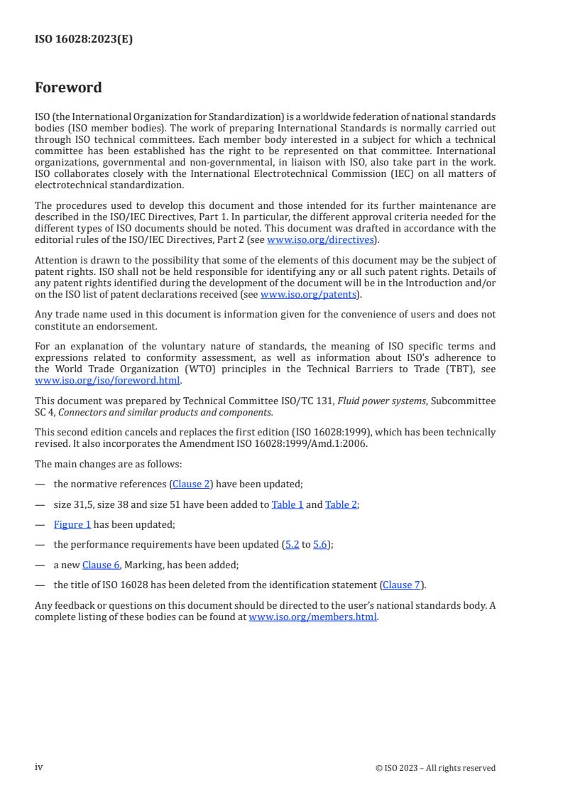 ISO 16028:2023 - Transmissions hydrauliques — Dimensions et exigences des raccords rapides de type à face plane Released:22. 03. 2023