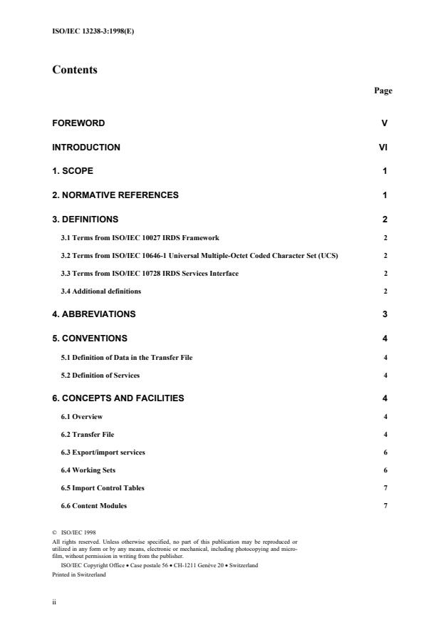 Keywords: ISO/IEC 13238-3, IRDS export/import facility, IRDS Transfer File, IRD Definition, UCS-2, BMP, metadata transfer, data dictionary exchange.