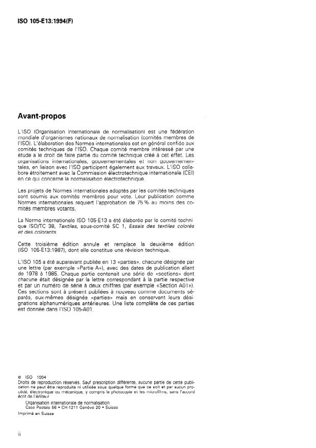 La Norme internationale ISO 105-El3 a eté élaborée par le comité techni-