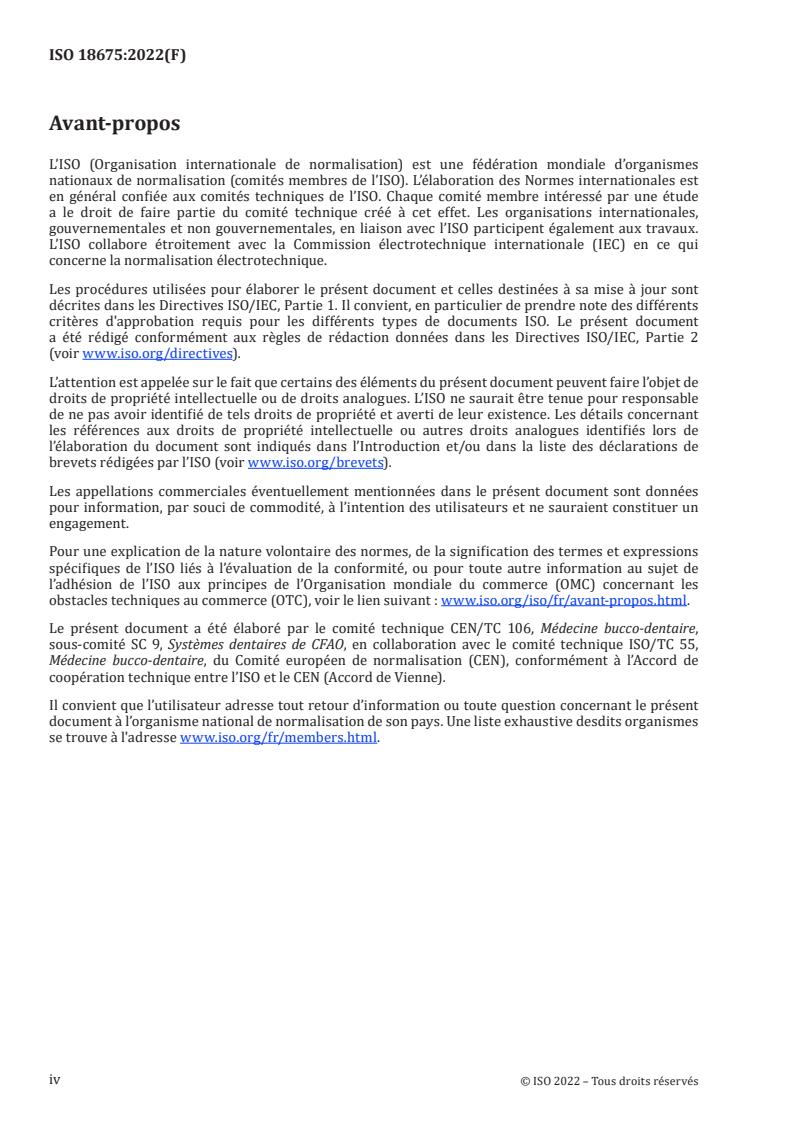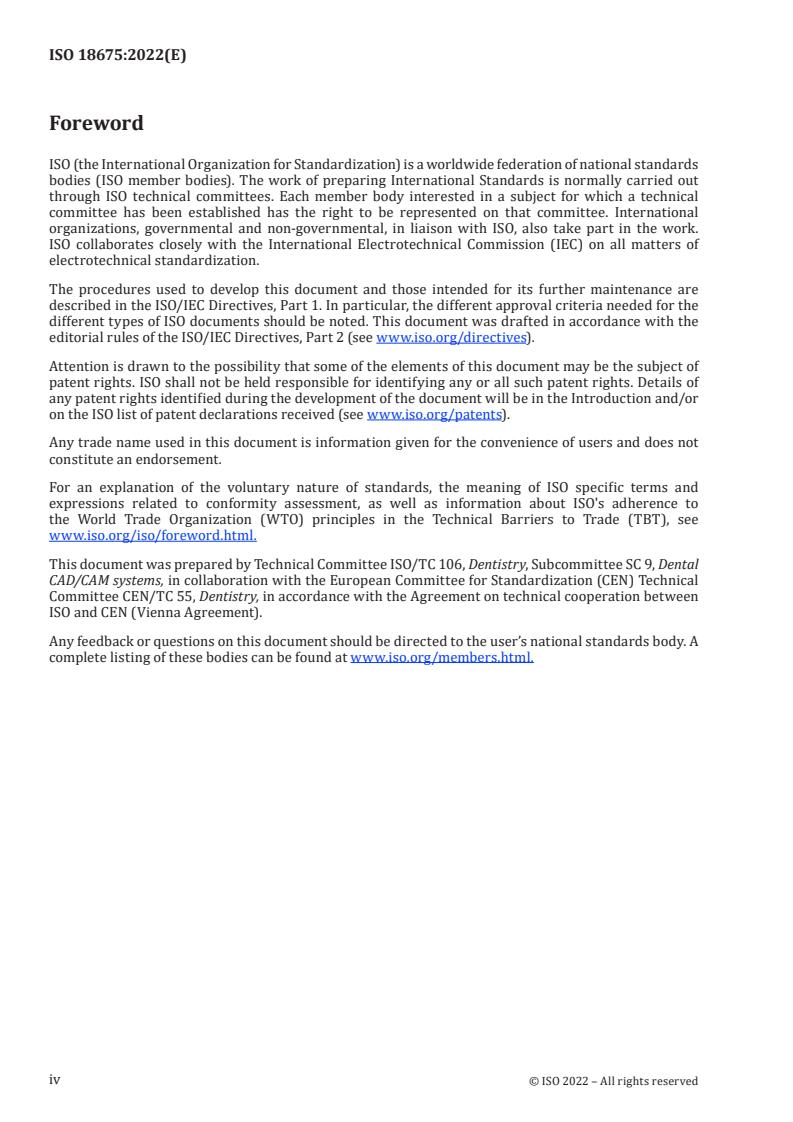 ISO 18675:2022 is a standard published by the International Organization for Standardization (ISO). Its full title is "Dentistry - Machinable ceramic blanks". This standard covers: This document specifies test methods for machinable ceramic blanks used for the fabrication of dental fixed restorations. This document also specifies the contents of the test report.