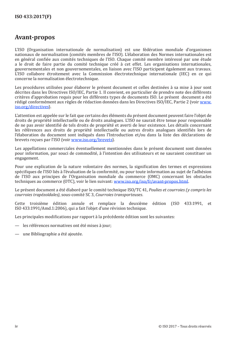 Le présent document a été élaboré par le comité technique ISO/TC 41, Poulies et courroies (y compris les