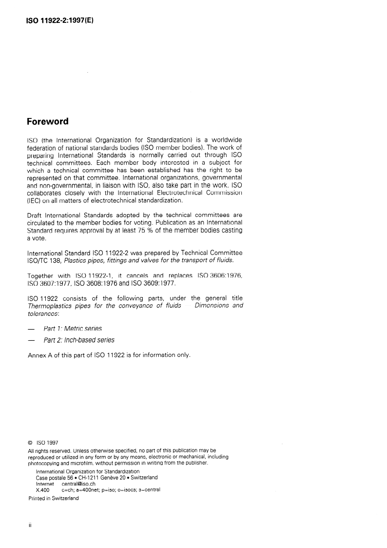 ISO 11922-2:1997 - Thermoplastics pipes for the conveyance of fluids — Dimensions and tolerances — Part 2: Inch-based series Released:4/3/1997