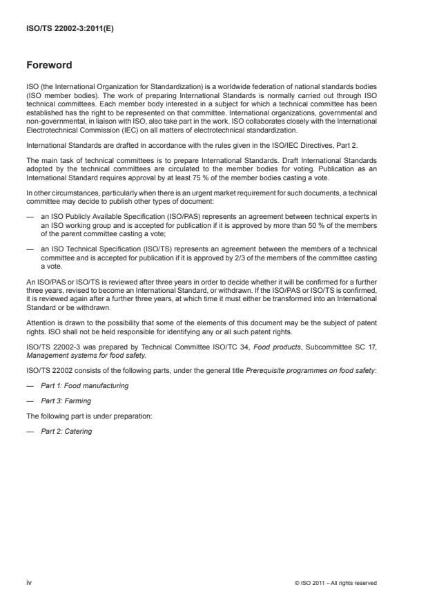 Keywords: ISO/TS 22002-3:2011, prerequisite programmes, PRPs, food safety, farming, on‑farm controls, ISO 22000, GAP, GHP, crop production, animal production, hazard analysis.
