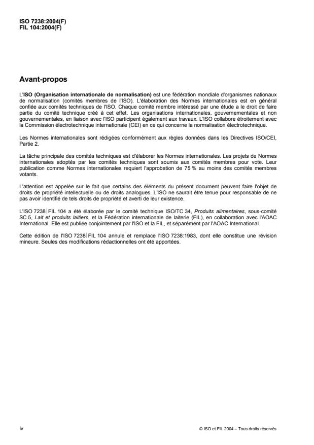 ISO 7238IDF 104 was prepared by Technical Committee ISO/TC 34, Food products, Subcommittee SC 5,