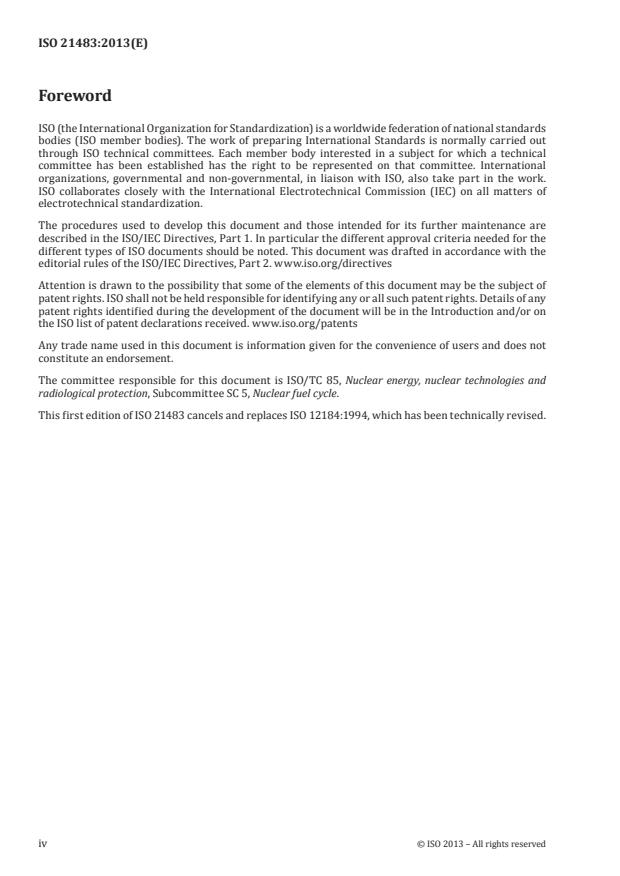 Previous standard covering a similar scope with technical revisions addressed in ISO 21483:2013.Other Nuclear Fuel Cycle Standards by ISO/TC 85