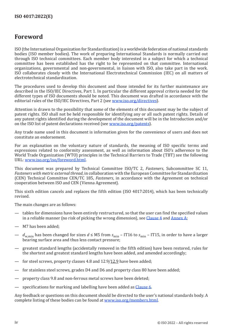 Cette sixième édition annule et remplace la cinquième édition (ISO 4017:2014), qui a fait l’objet d’une