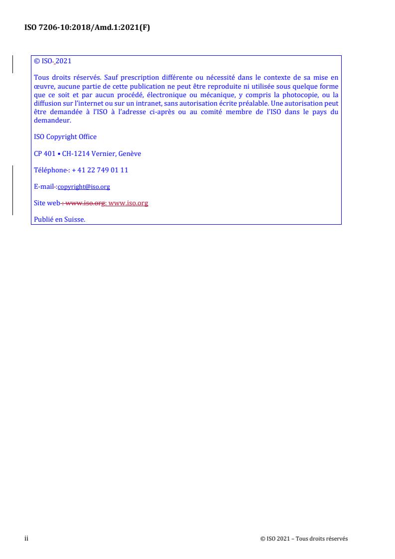 ou sur un Intranet, sans autorisation écrite préalable. Les demandes d’autorisation peuvent être adressées à l’ISO à l’adresse ci-
