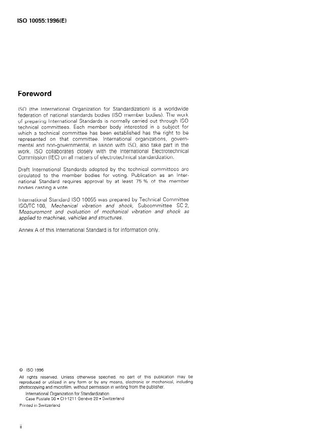 Keywords: ISO 10055:1996, vibration testing, shipboard equipment, machinery components, vibration resistance, ship machinery vibrations, resonance testing, endurance test, marine equipment testing, vibration standards, maritime machinery durability, ship equipment certification.