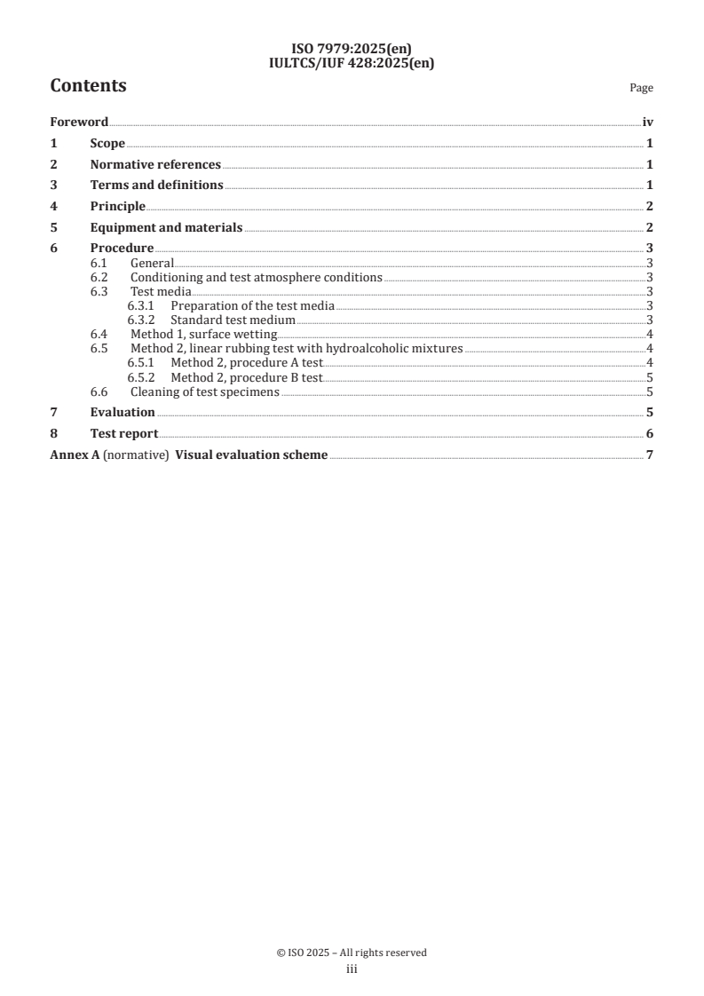 ISO 7979:2025 - Leather — Tests for colour fastness — Colour fastness to hydroalcoholic mixtures Released:15. 07. 2025