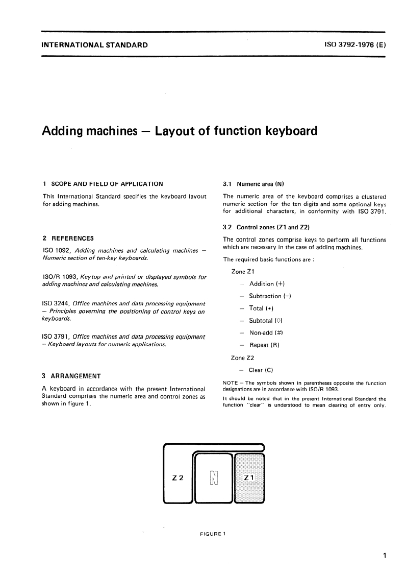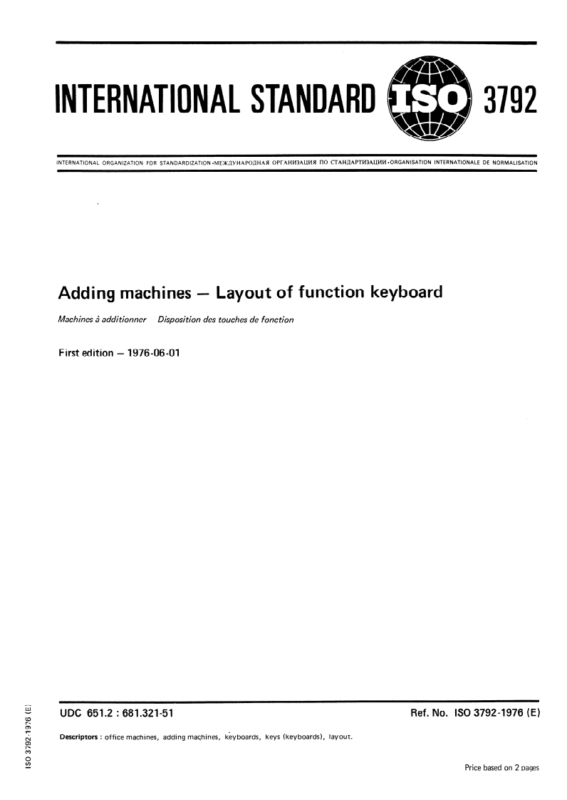 ISO 3792:1976 - Adding machines — Layout of function keyboard/1/1976