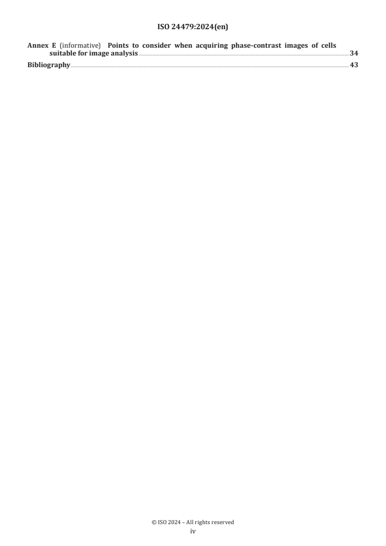 ISO 24479:2024 provides a comprehensive framework for cellular morphological analysis, setting clear general requirements and considerations essential for cell morphometry. The scope of this standard is particularly relevant for researchers and professionals engaged in the quantification of cell morphological features, focusing on critical parameters like cell shape, size, and texture. By establishing guidelines for cell image capture through optical microscopy and subsequent image processing for morphometric analysis, ISO 24479:2024 enhances the precision and reliability of cellular research. One of the strengths of this standard is its thorough approach to defining key terms and descriptors related to cell morphology. This foundational vocabulary supports consistency across research studies, facilitating clearer communication among scientists. Additionally, the inclusion of examples and formulae for quantitative cellular morphological features provides practical tools for evaluating cell morphology, further solidifying its utility in biochemical and biotechnological contexts. While the standard emphasizes the morphological analysis of cultured mammalian cells, which is a significant area of focus within biotechnology, its explicit limitation in addressing statistical aspects of morphological analysis invites users to supplement this standard with additional statistical methodologies tailored to their specific research designs. Furthermore, it is crucial to note that ISO 24479:2024 is not intended for clinical diagnostic imaging, which clearly delineates its intended application and reinforces the commitment to research and experimental rigor. Overall, ISO 24479:2024 stands out as an essential guideline for biotechnology professionals aiming to achieve accurate and standardized methodologies in cellular morphological analysis, underscoring its relevance in ongoing research and development within the field.
