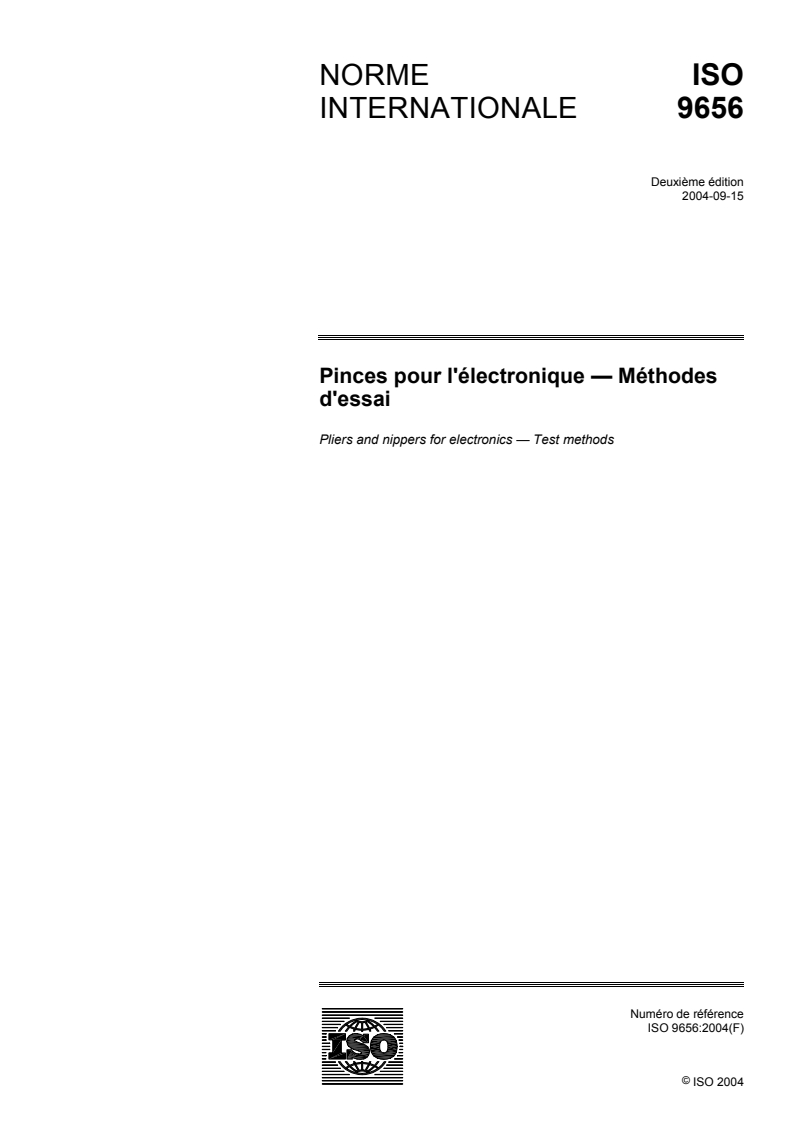 ISO 9656:2004 - Pliers and nippers for electronics — Test methods Released:9/30/2004
