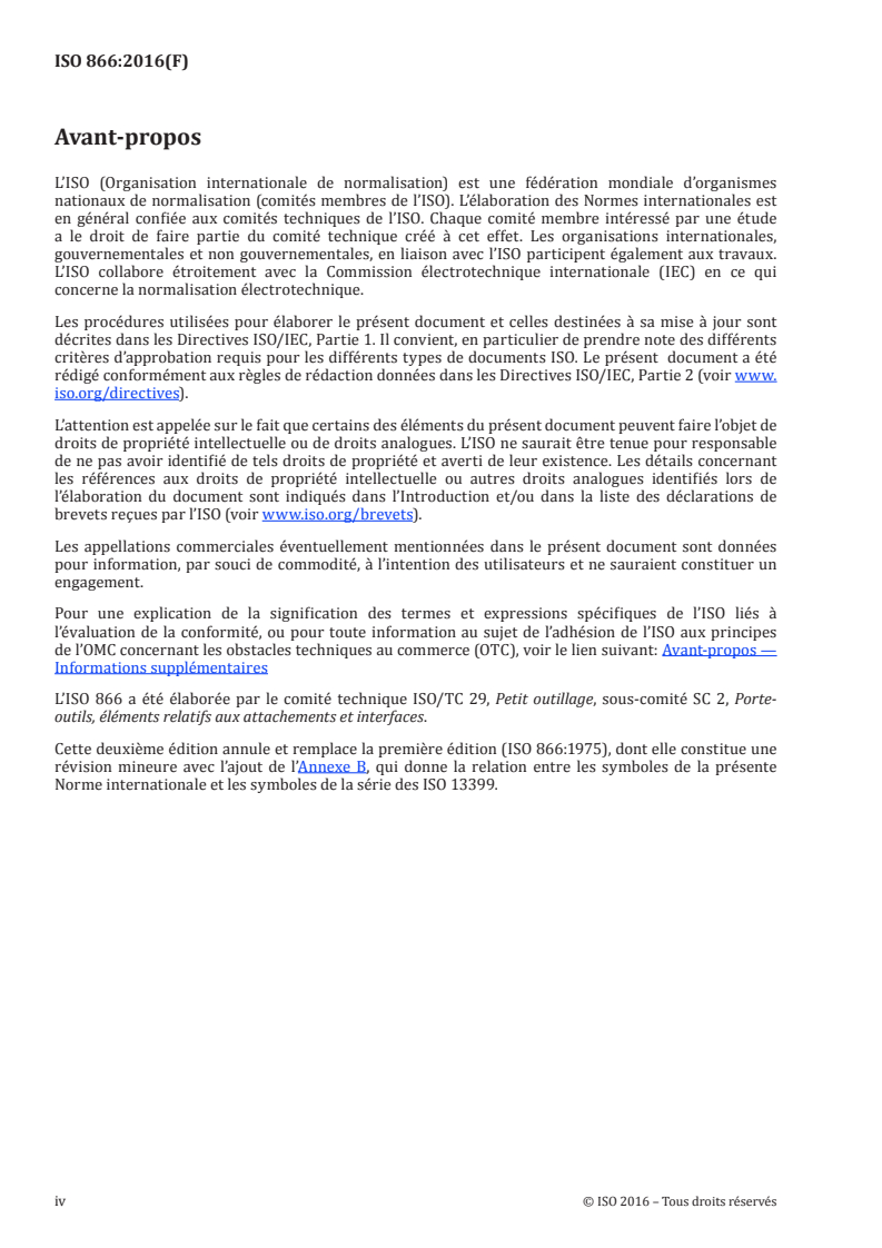 L’ISO 866 a été élaborée par le comité technique ISO/TC 29, Petit outillage, sous-comité SC 2, Porte-