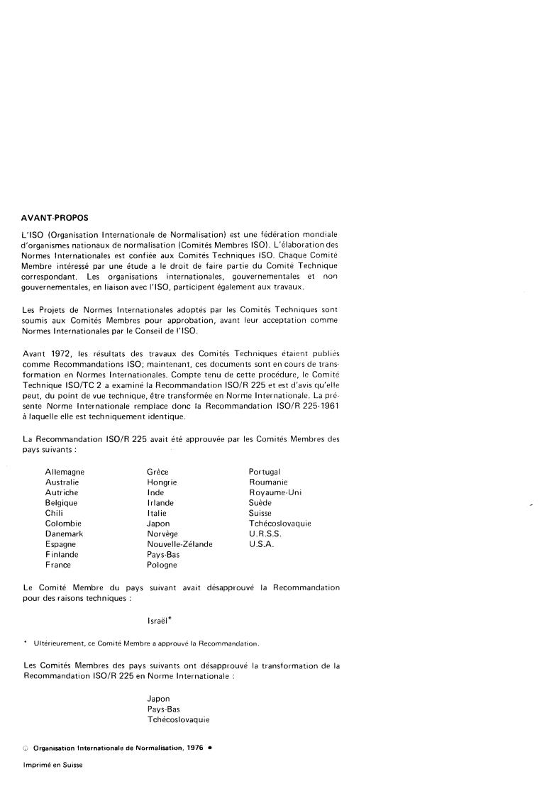 La Recommandation ISO/R 225 avait été approuvée par les Comités Membres des