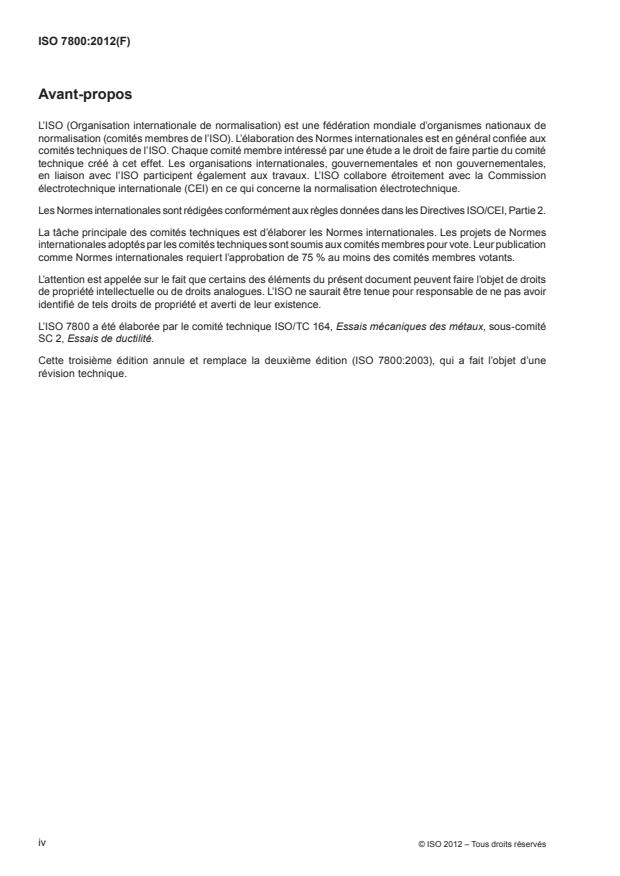 L’ISO 7800 a été élaborée par le comité technique ISO/TC 164, Essais mécaniques des métaux, sous-comité