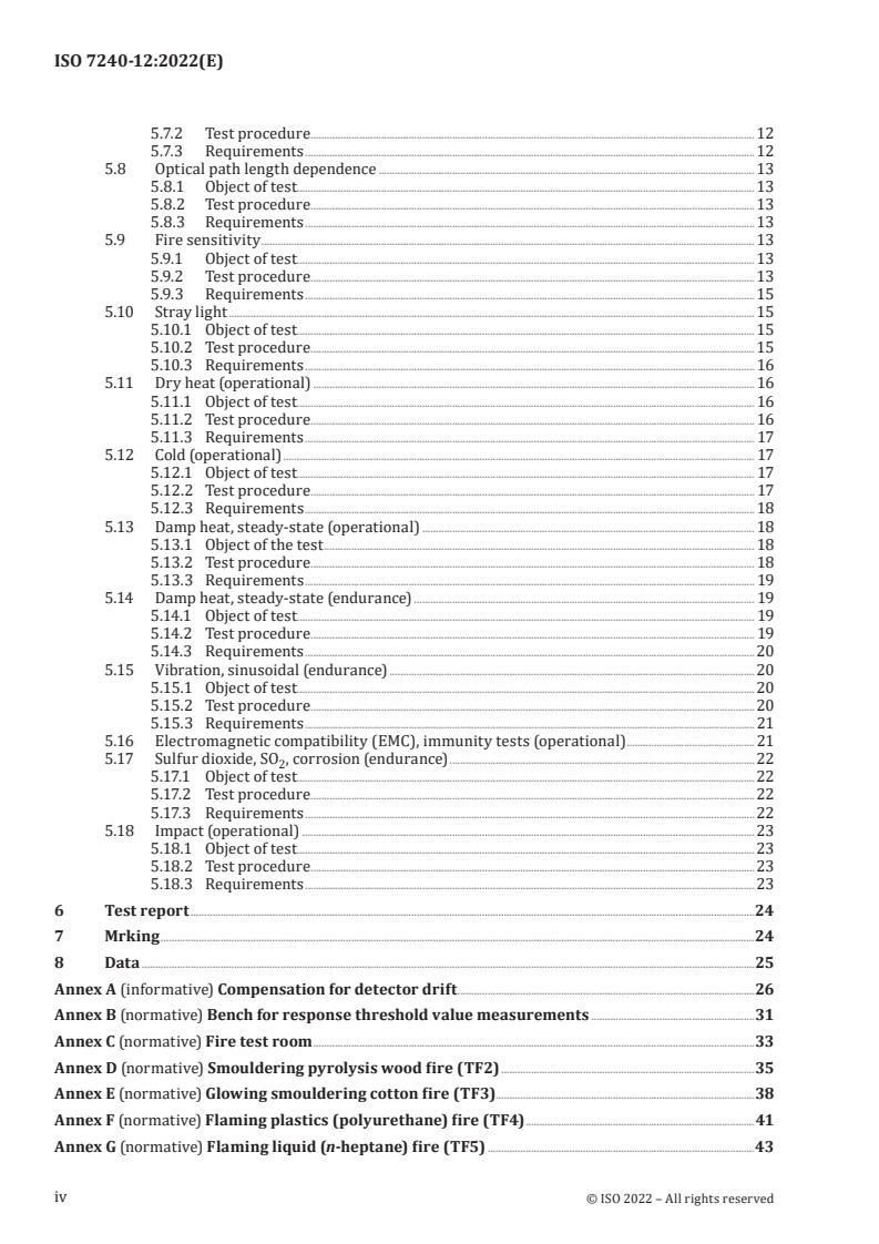 ISO 7240-12:2022 covers both functional requirements and extensive testing. Key topics include: