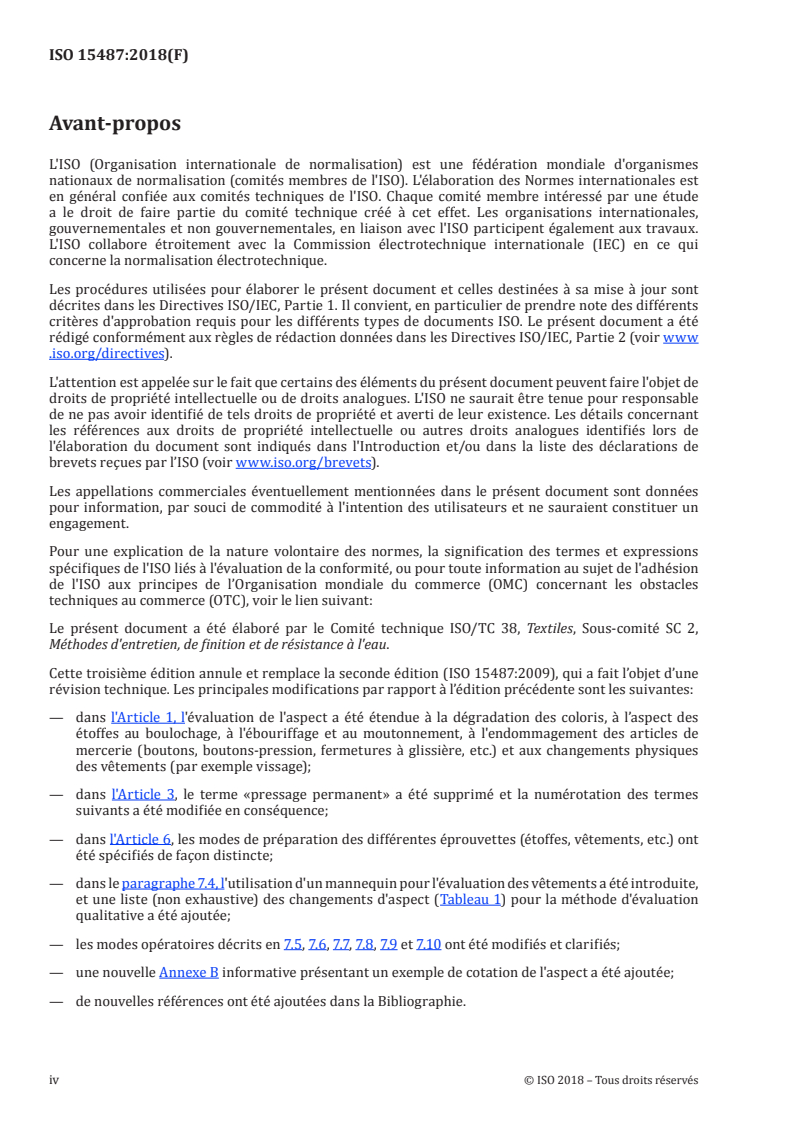 ISO 15487:2018 - Textiles — Méthode d'évaluation de l'aspect des vêtements et autres produits textiles finis après lavage et séchage domestiques Released:9/5/2018