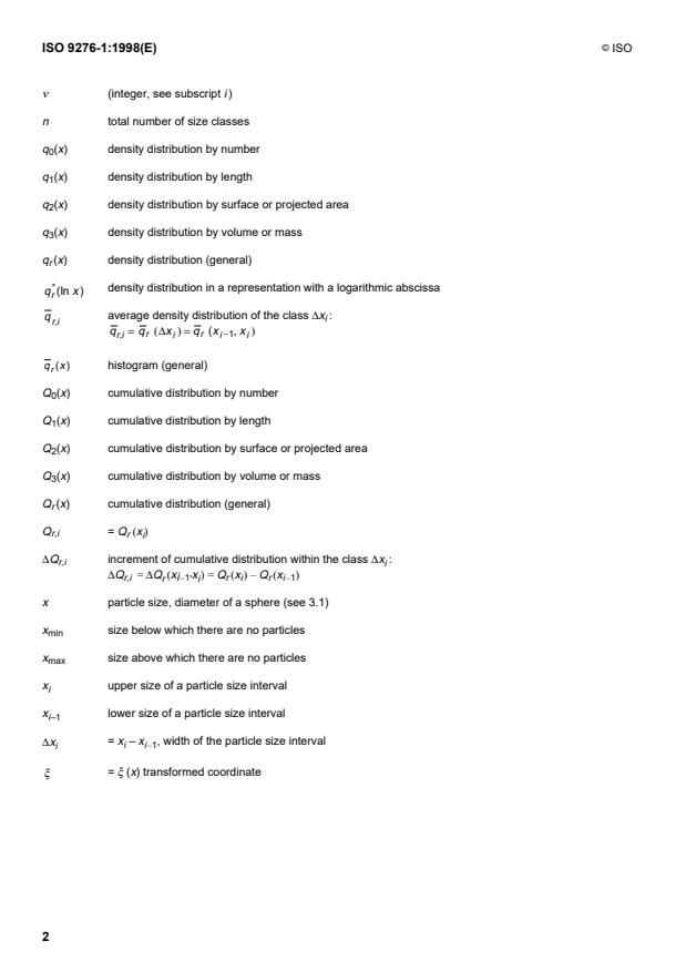 Dans la présente partie de l’ISO 9276, le symbole x est utilisé pour signifier la taille particulaire ou le diamètre de la