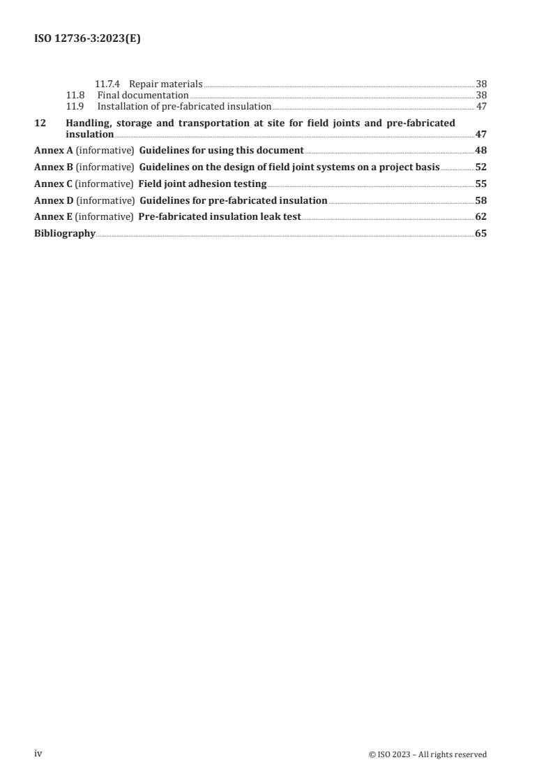 - Informative annexes - guidance on using the document, design of field joint systems, adhesion testing, pre-fabrication guidance and leak testing.