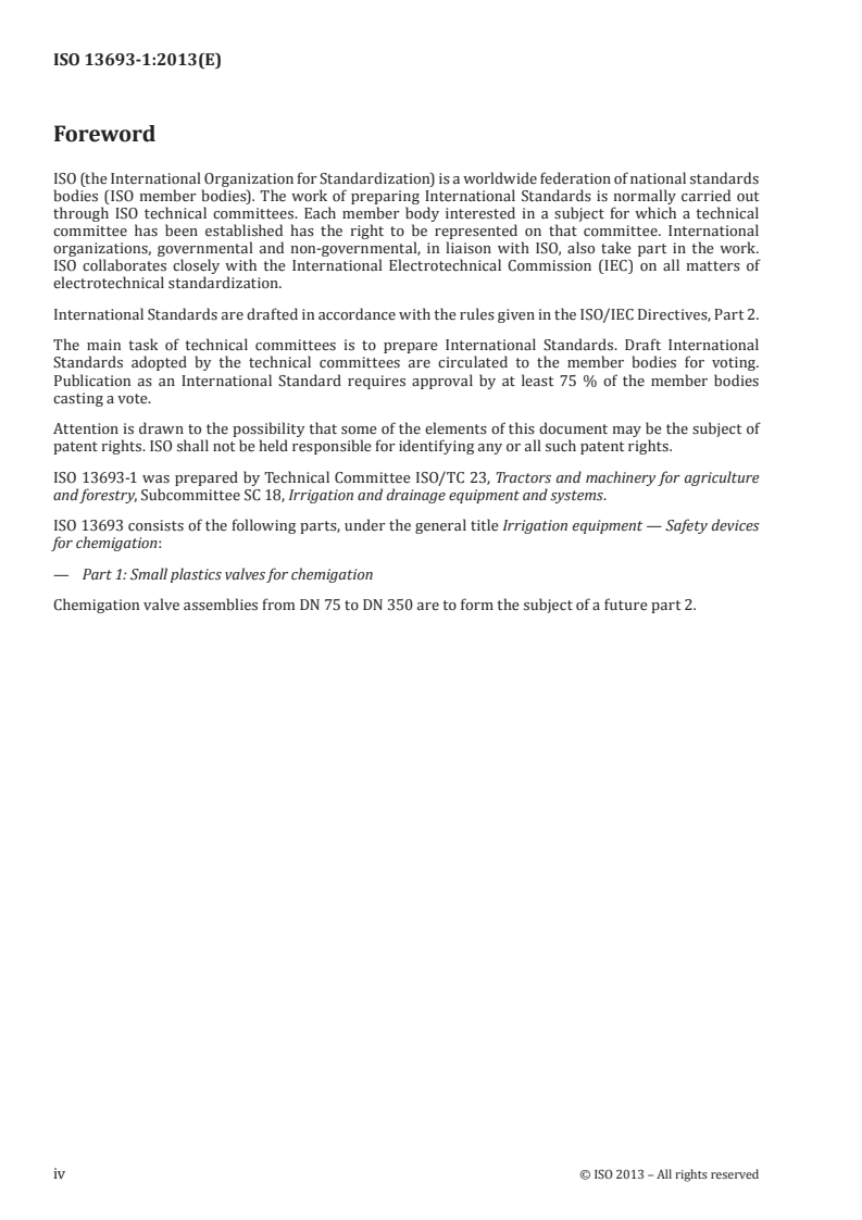 Overview - ISO 13693-1:2013 (Irrigation equipment - Small plastics valves for chemigation)