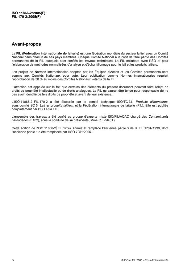 iv © ISO et FIL 2005 – Tous droits réservés