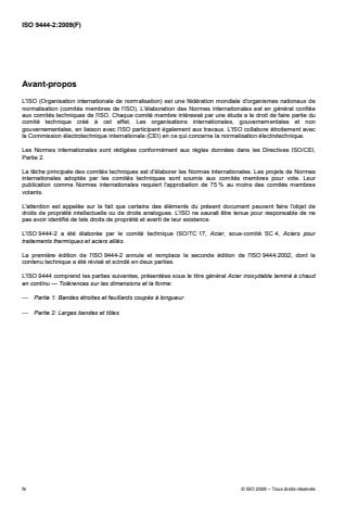 L'ISO 9444-2:2009 spécifie les tolérances sur les dimensions et la forme pour les larges bandes en acier inoxydable laminées à chaud en continu, en largeurs réelles de 600 mm à 2 500 mm et pour les tôles découpées dans de telles bandes.