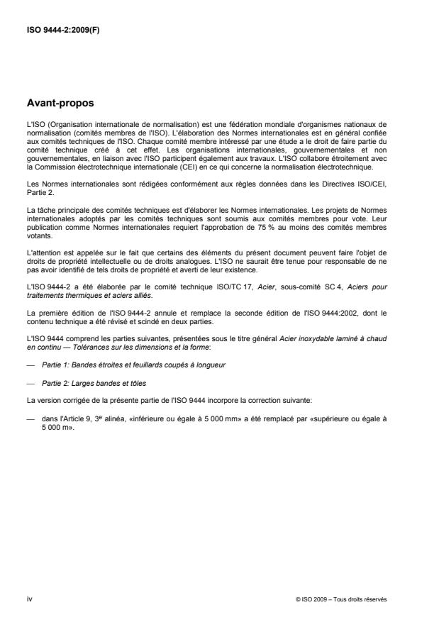 ISO 9444-2:2009 specifies the tolerances on dimensions and form for continuously hot-rolled stainless steel wide strip in actual widths from 600 mm to 2 500 mm and for sheet/plate cut from such strip.