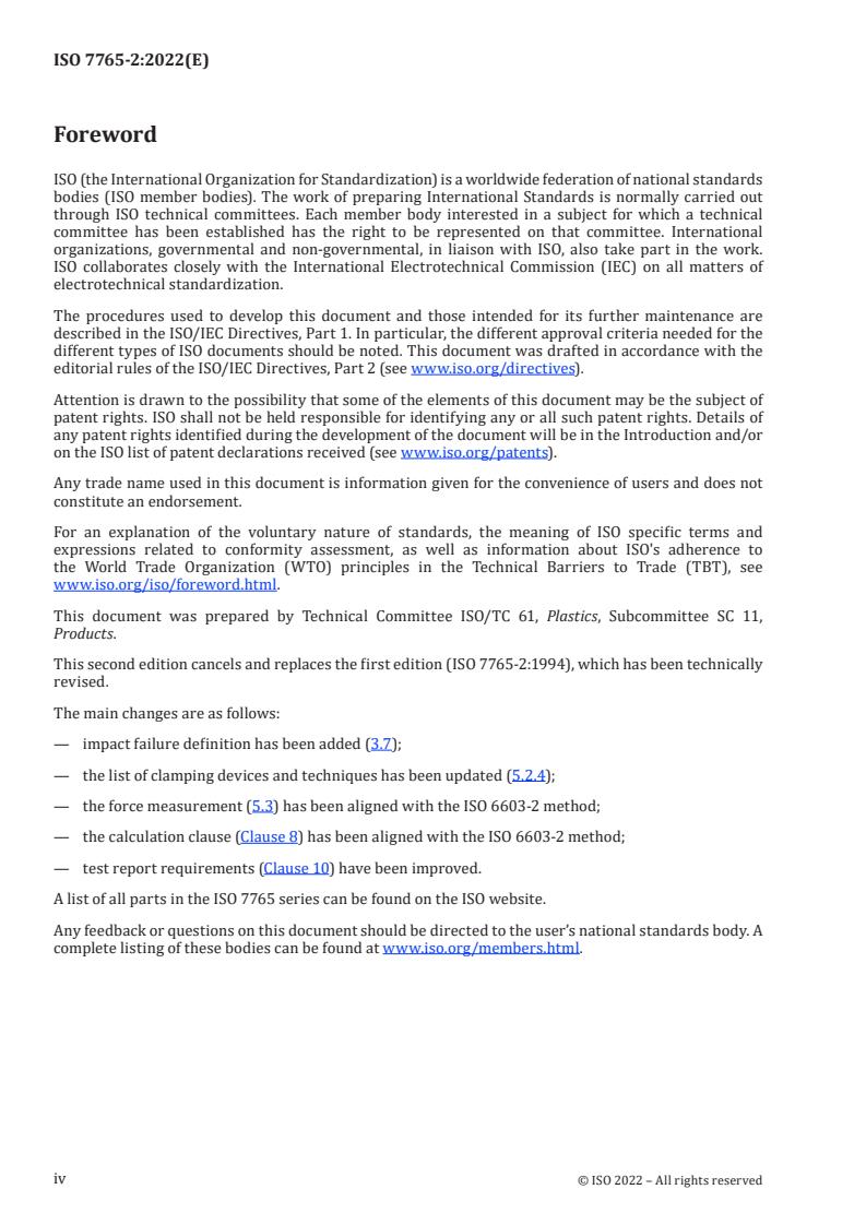 - Alignment and updates: This 2022 second edition replaces ISO 7765‑2:1994 and aligns force measurement and calculation clauses with ISO 6603‑2; it also updates impact failure definitions, clamping guidance and reporting requirements.