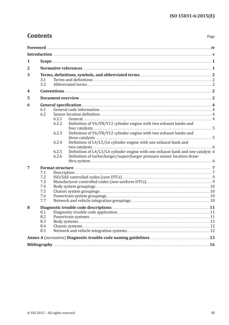 ISO 15031-6:2015 - Road vehicles — Communication between vehicle and external equipment for emissions-related diagnostics — Part 6: Diagnostic trouble code definitions/28/2015