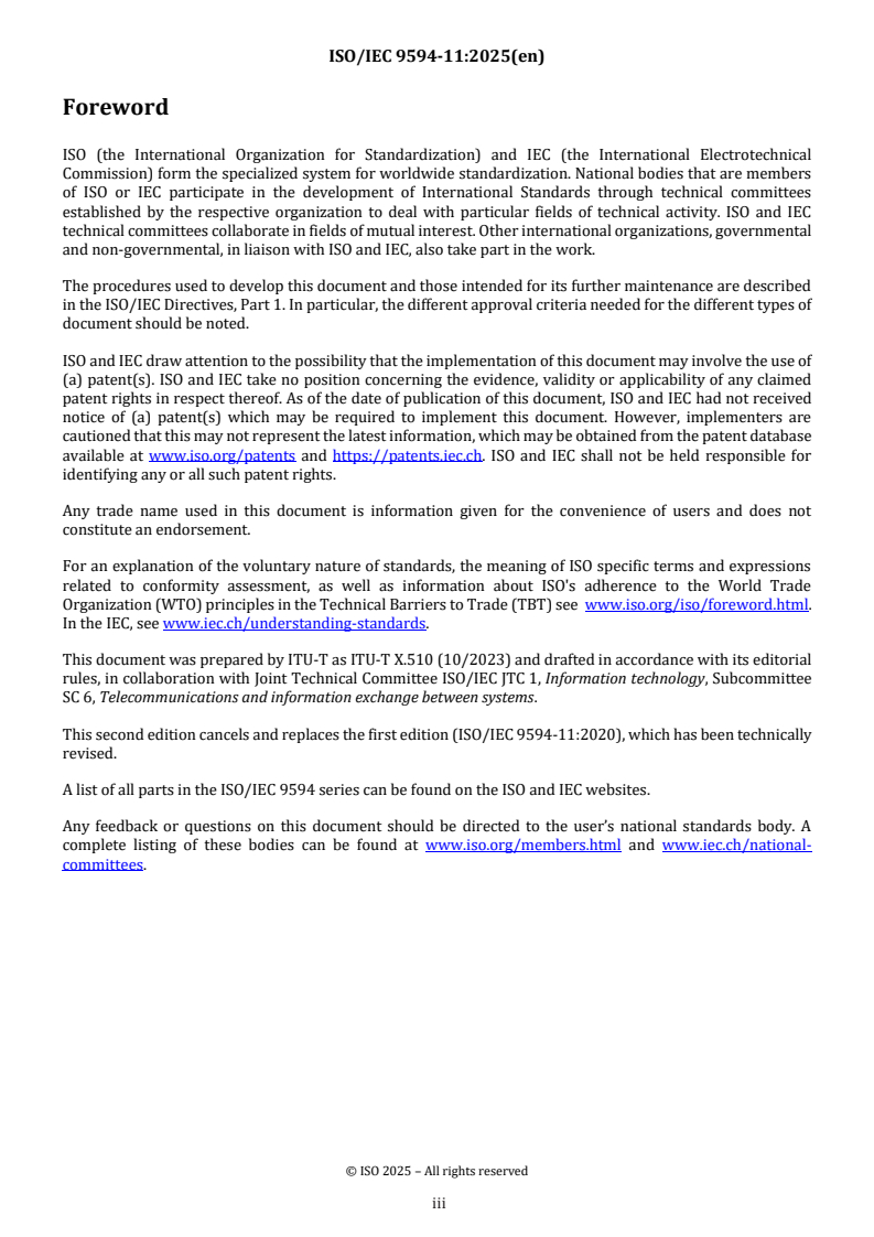 ISO/IEC 9594-11:2025 has the following relationships with other standards: It is inter standard links to ISO/IEC 9594-11:2020. Understanding these relationships helps ensure you are using the most current and applicable version of the standard.
