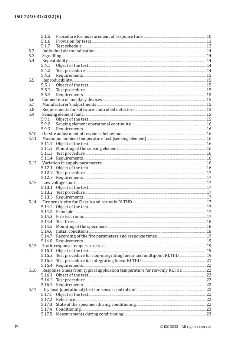 ISO 7240-31:2022 is a document that outlines the specifications and performance criteria for resettable line-type heat detectors used in fire detection and alarm systems. These detectors consist of a sensing element distributed along its length and connected to a control unit. The document provides test methods and guidelines for assessing the detectors. It also includes resettable line-type heat detectors used for local protection of plants and equipment. However, it does not cover non-resettable line-type heat detectors that can only respond once and are based on fixed temperature electrical cables.